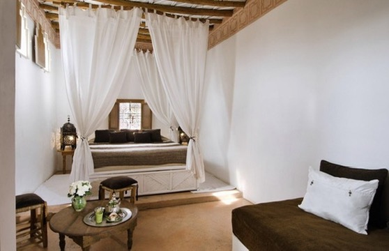 Vi bor i en eventyrlig afslappet riad i Marrakech, så du til hver en tid kan trække dig tilbage fra livet udenfor med en kop the og en god bog.