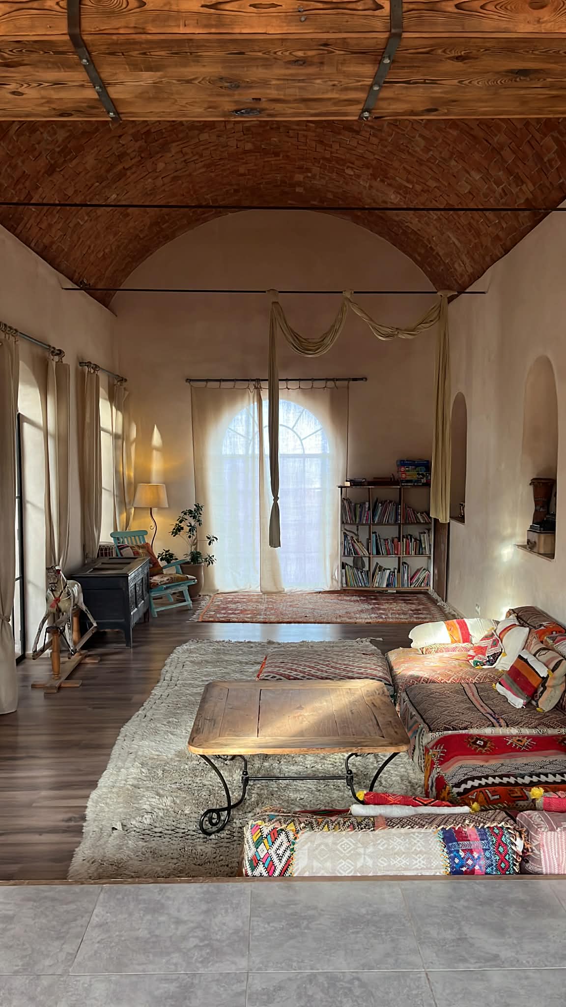 Morgensolen strømmer ind i dette rum gennem spisestuen. Aftenlyset fylder det fra den vestlige bue. I dagens varme, under den plettede skygge, er det et perfekt sted at hænge ud med en bog eller snack.